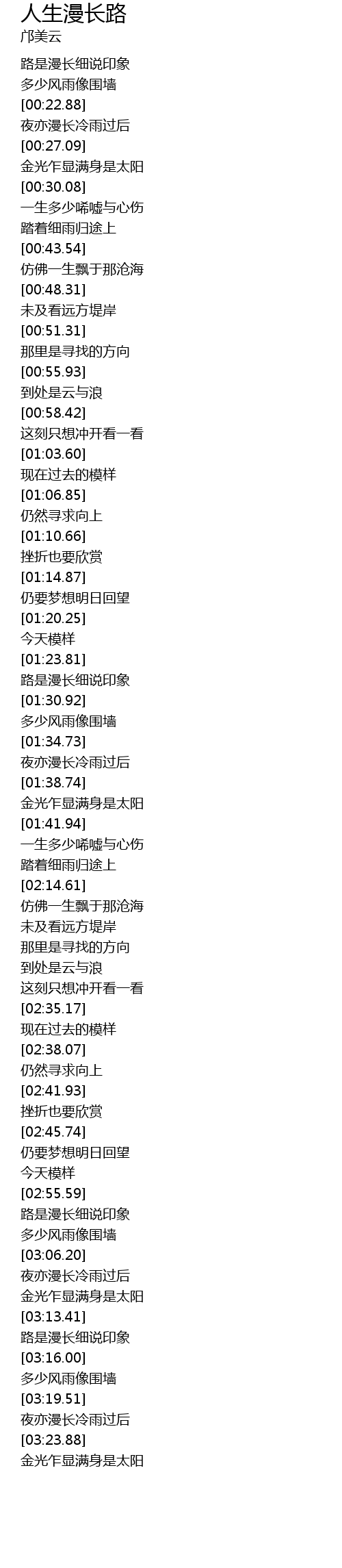 | [02:59.55] | lù shì màn cháng xì shuō yìn xiàng |