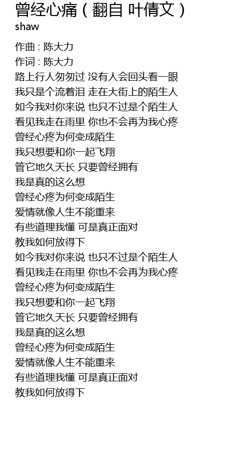 | 我只是个流着泪 走在大街上的陌生人 | |