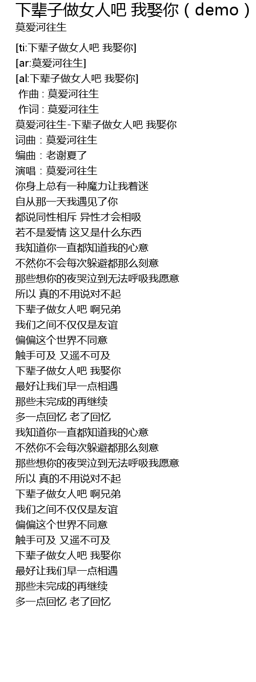 | [00:00.79] | 莫爱河往生-下辈子做女人吧 我娶你 |