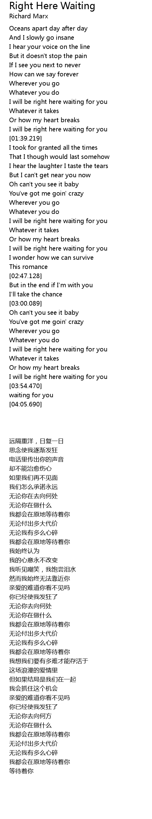 I will be right here waiting for you |