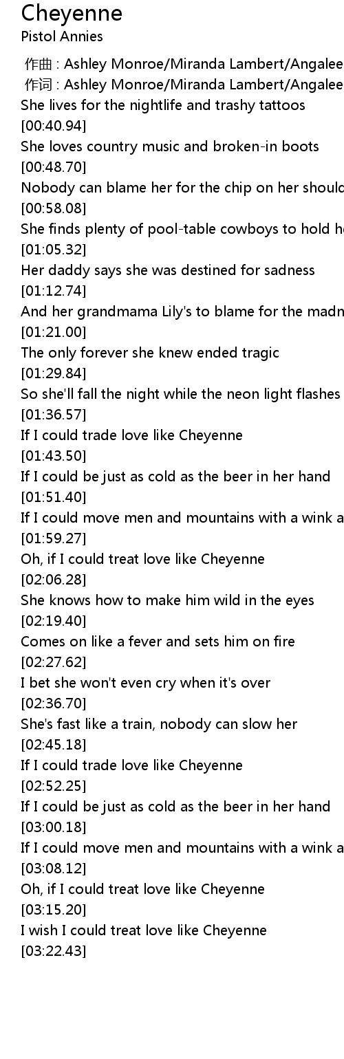 | [02:48.22] | If I could trade love like Cheyenne |