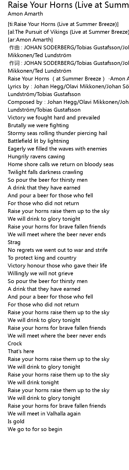 | [00:00.142] | Raise Your Horns at Summer Breeze Amon Amarth |