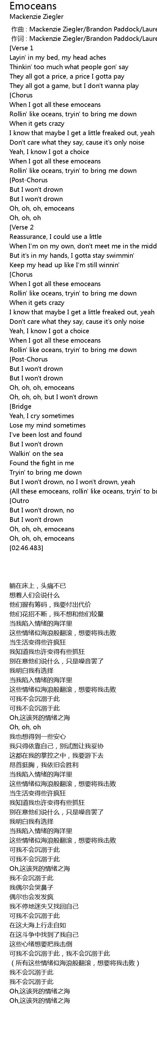 | [02:18.714] | (All these emoceans, rollin' like oceans, tryin' to bring me down) |