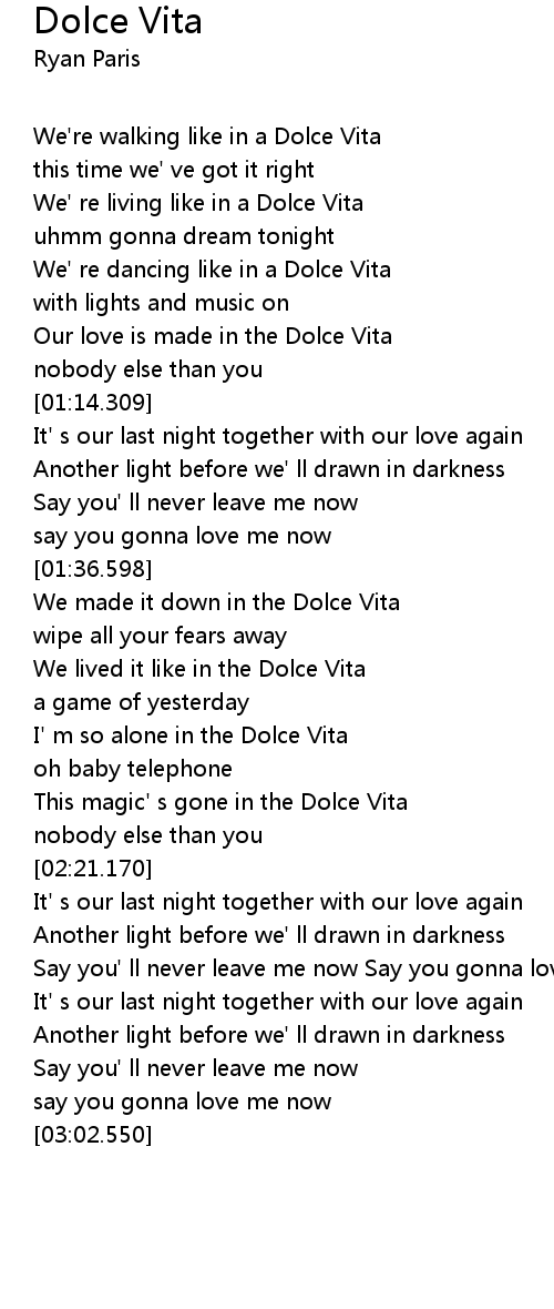 | [02:14.550] | This magic' s gone in the Dolce Vita |