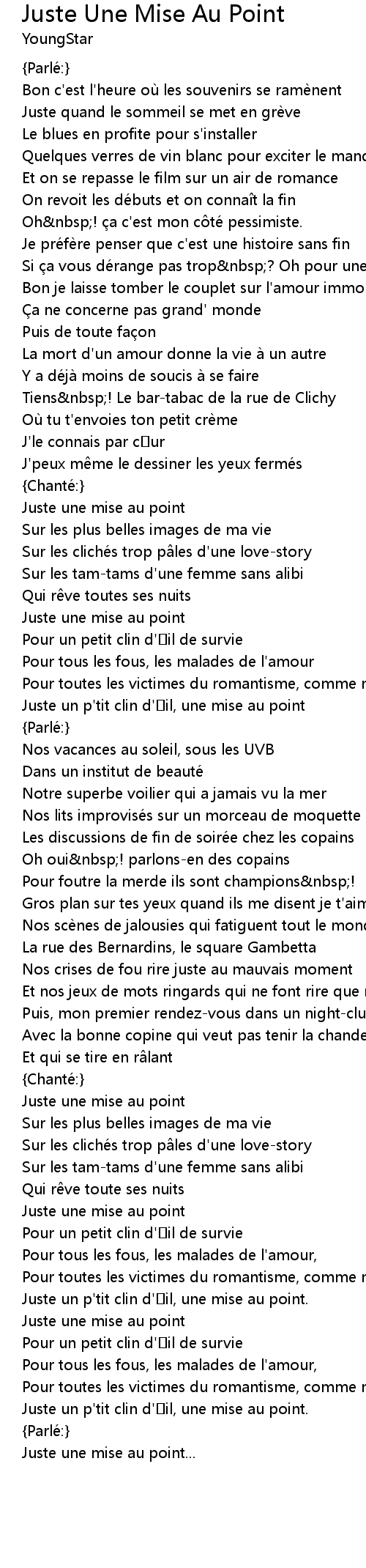 | Bon je laisse tomber le couplet sur l'amour immortel | |