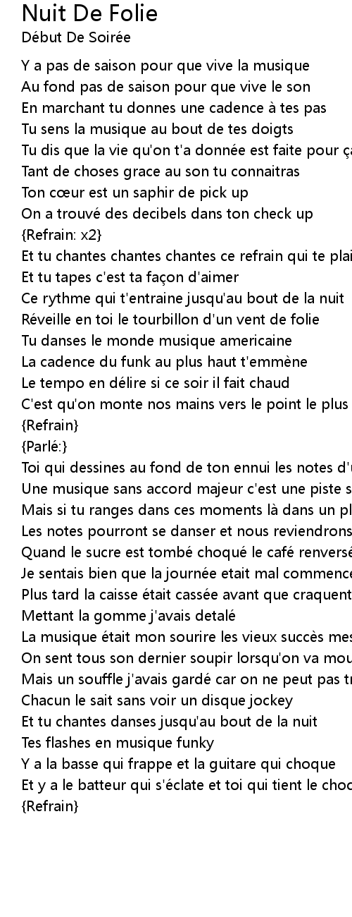 | Et tu chantes danses jusqu' au bout de la nuit | |