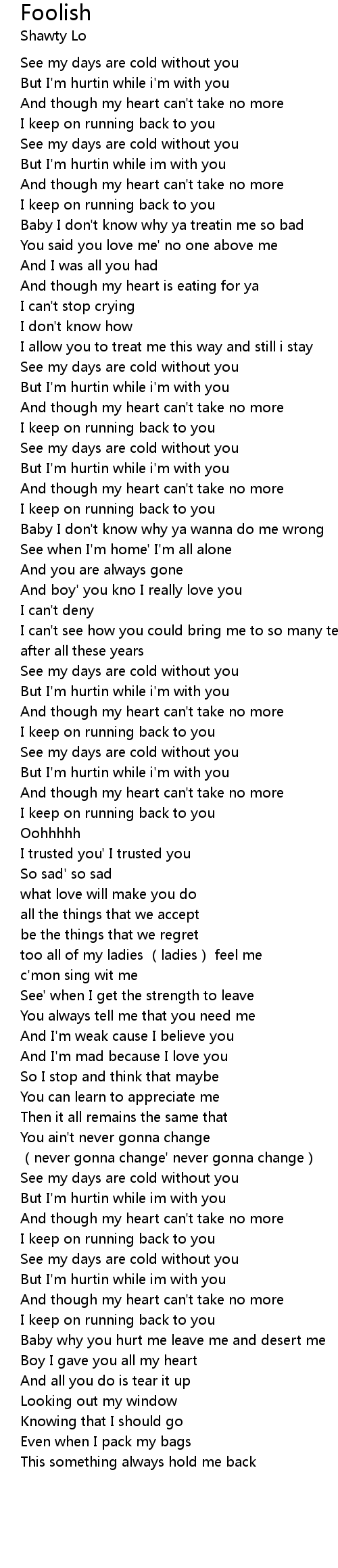 | Song | Foolish |