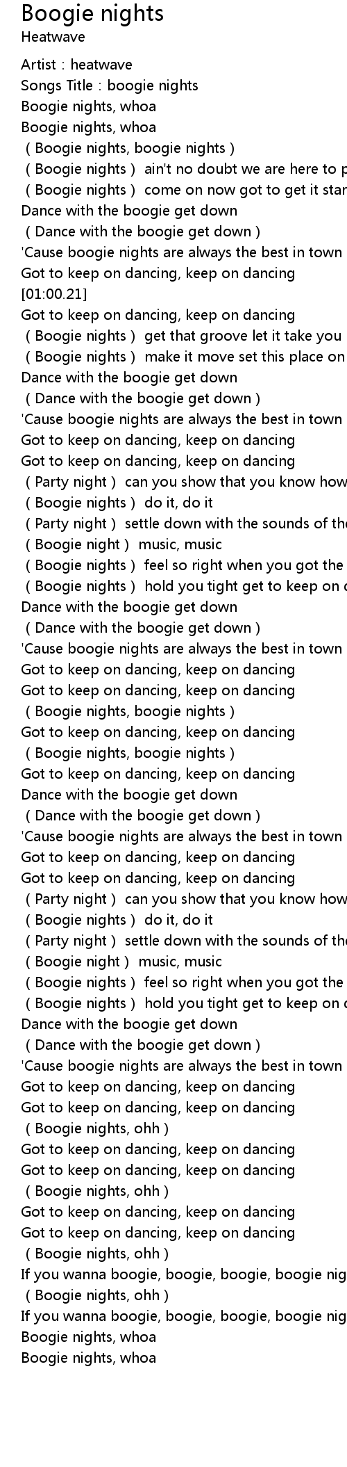 | [02:18.68] | (Boogie nights, boogie nights) |