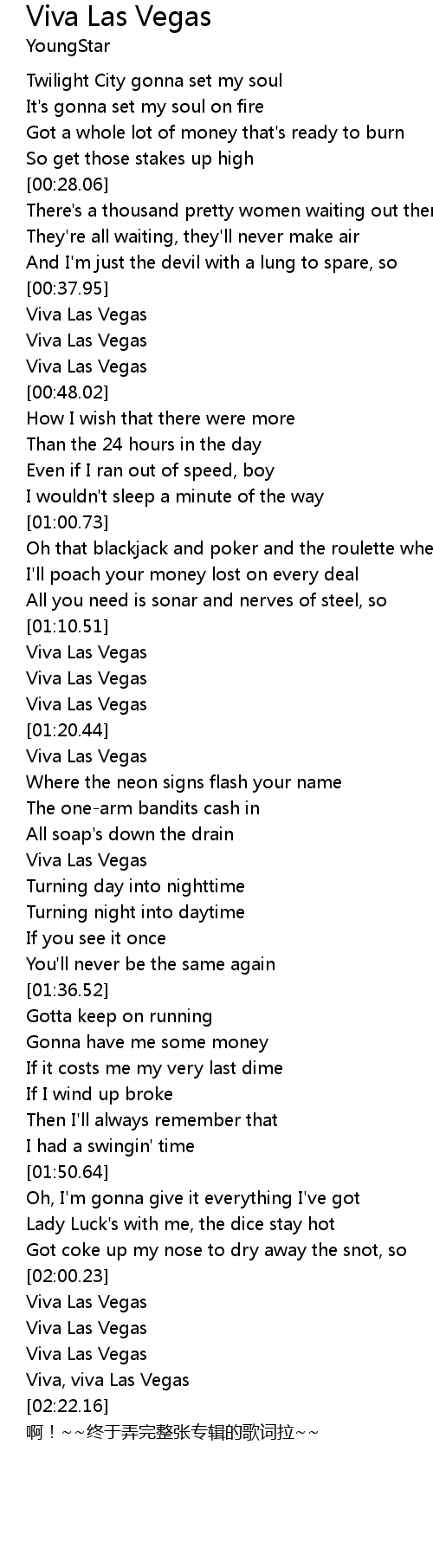 | [01:01.50] | Oh that blackjack and poker and the roulette wheel |