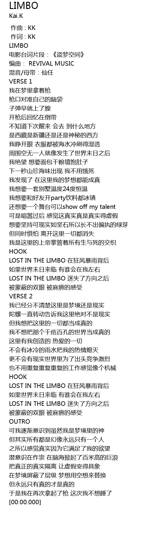| [00:00.000] | 作词 : KK |