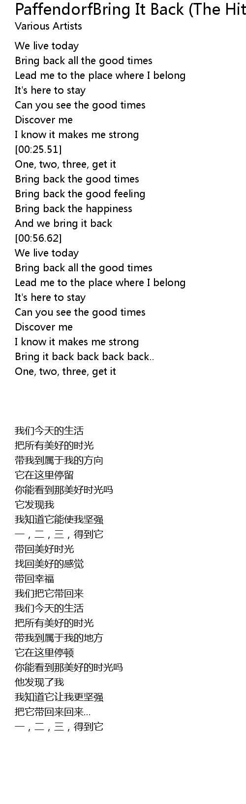 PaffendorfBring It Back (The Hitmen Remix Edit) Lyrics