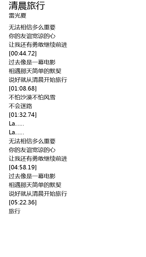 | [00:59.59] | 说好就从清晨开始旅行 |
