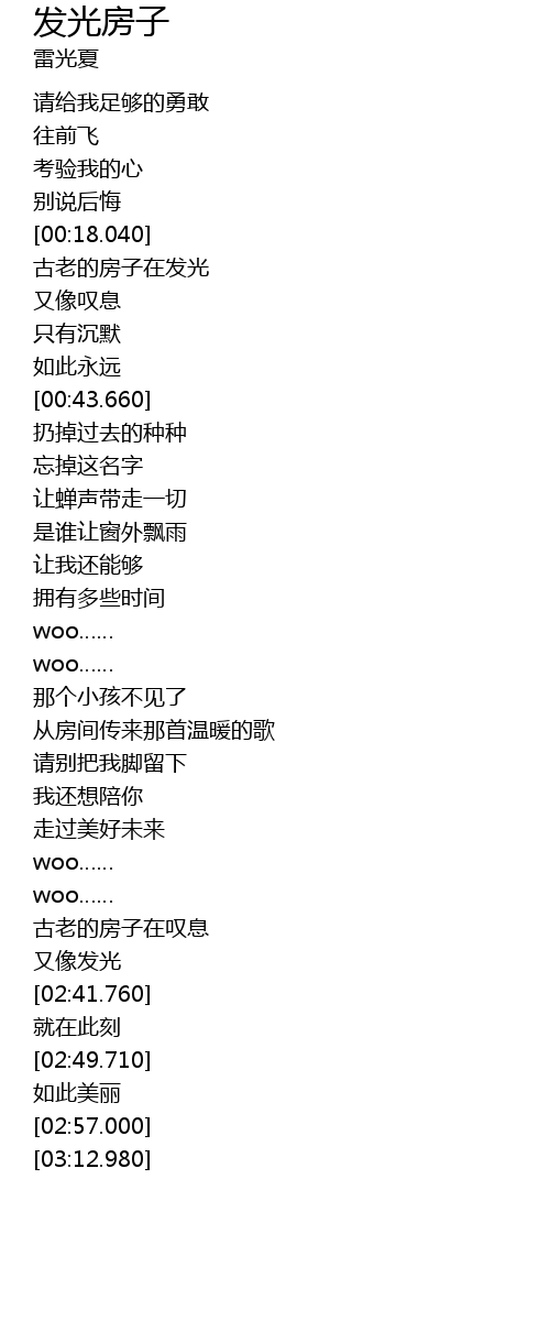 | [00:22.200] | gu lao de fang zi zai fa guang |