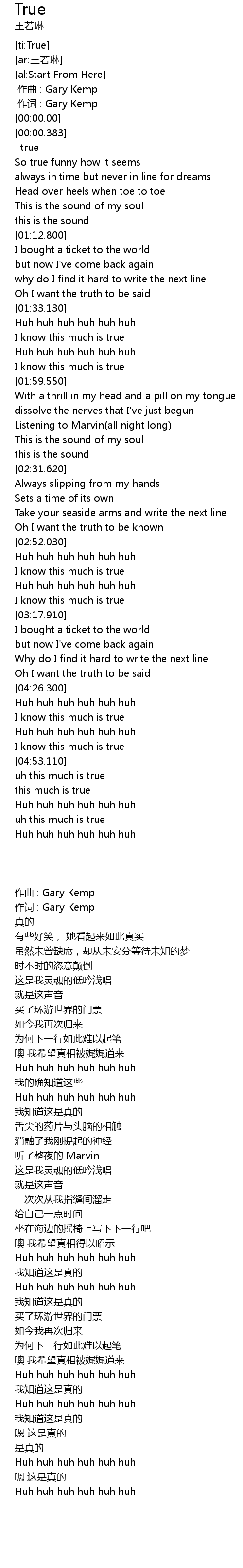 | [00:00.00] | zuò qǔ : Gary Kemp |