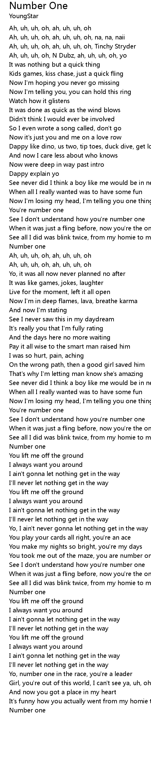 Ah, uh, uh, oh, ah, uh, uh, oh, Tinchy Stryder |