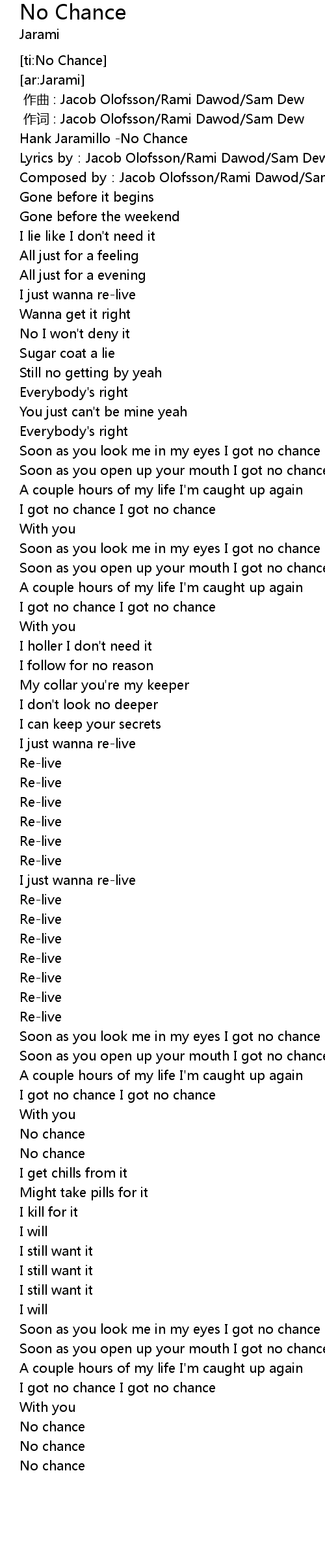 | [00:00.64] | Hank Jaramillo -No Chance |