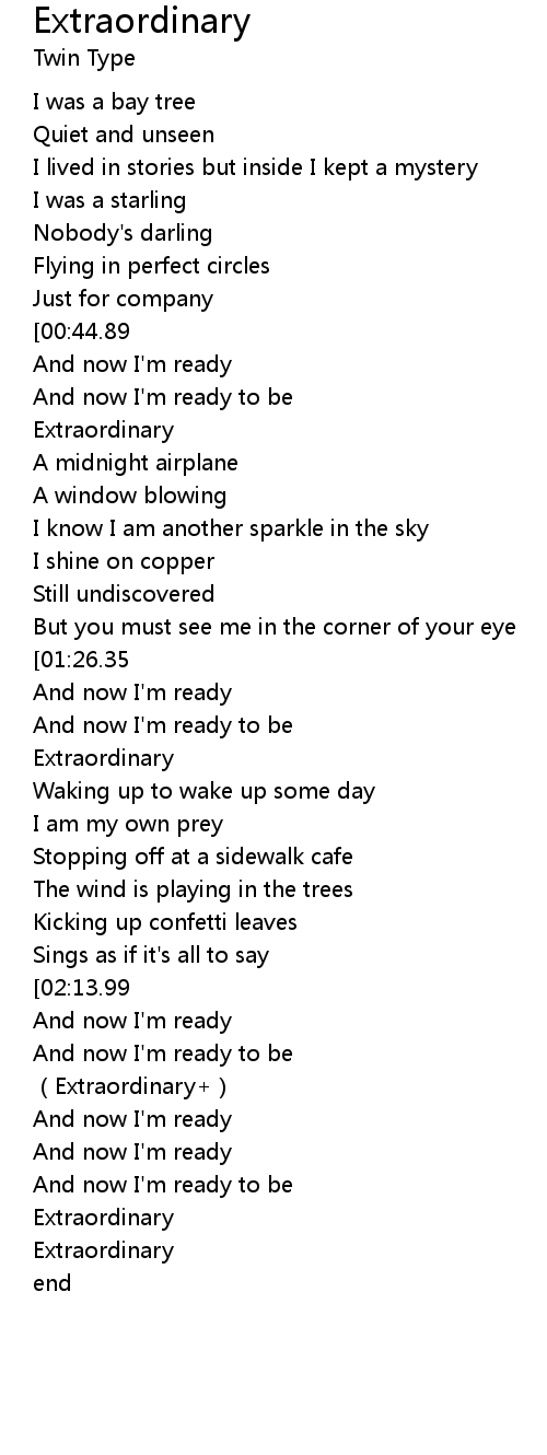 | [01:35.20] | Extraordinary |