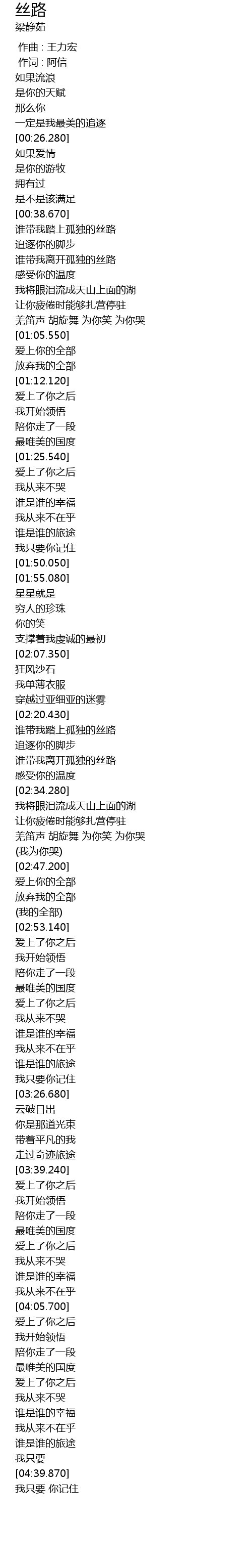 | [02:27.730] | 谁带我离开孤独的丝路 |
