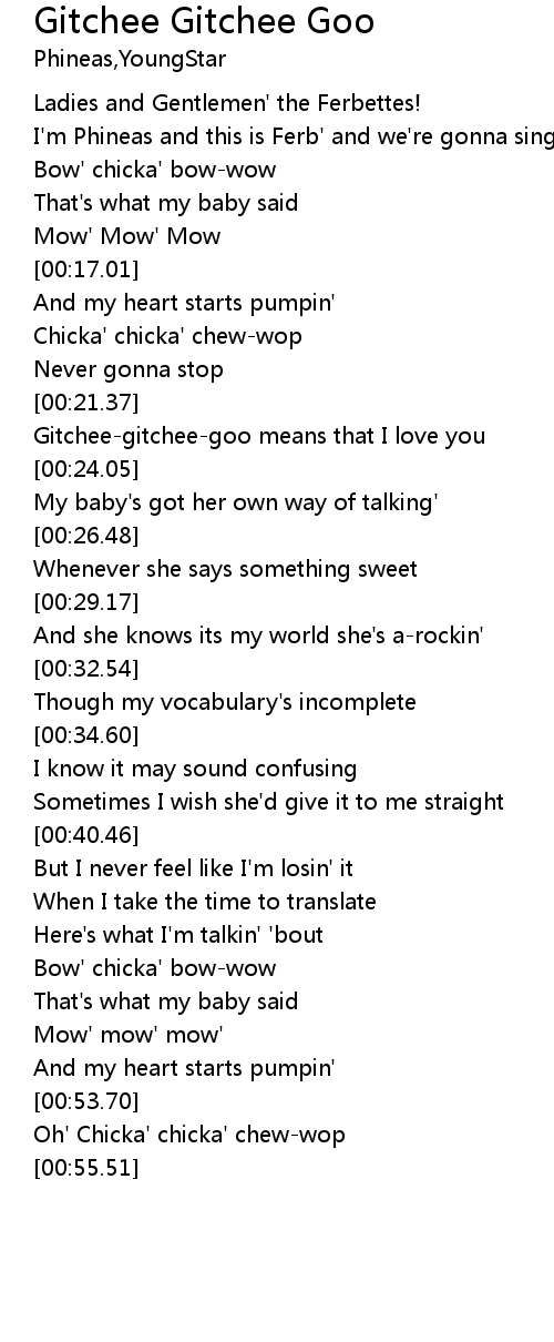| [00:21.99] | Gitchee-gitchee-goo means that I love you |