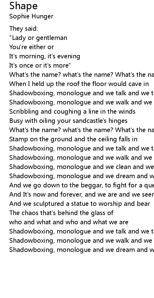 Shadowboxing, monologue and we talk and we talk and we talk |