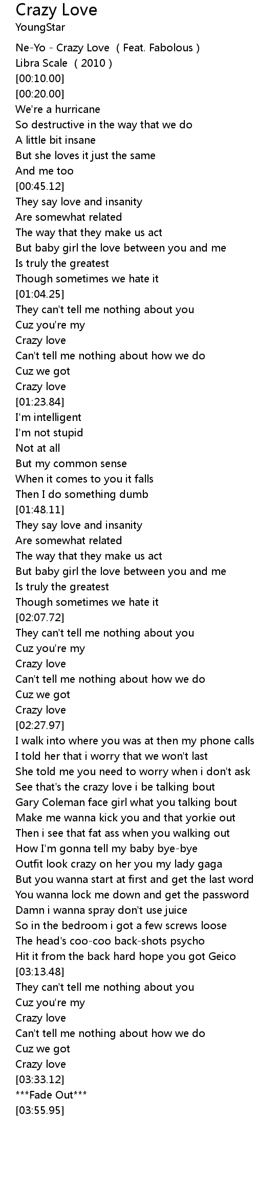 | [00:00.00] | NeYo Crazy Love Feat. Fabolous |