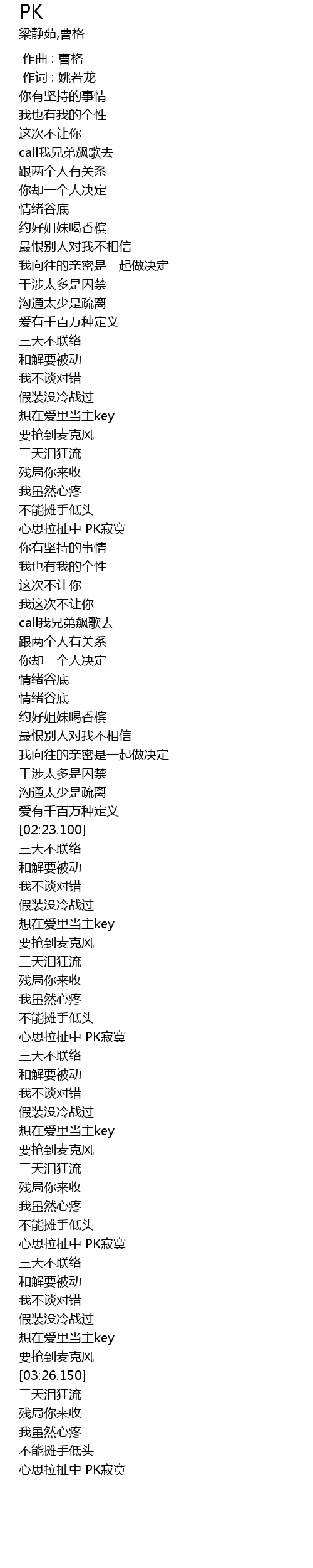 | [02:44.640] | 心思拉扯中 PK寂寞 |