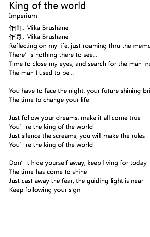 | Song | King of the world |