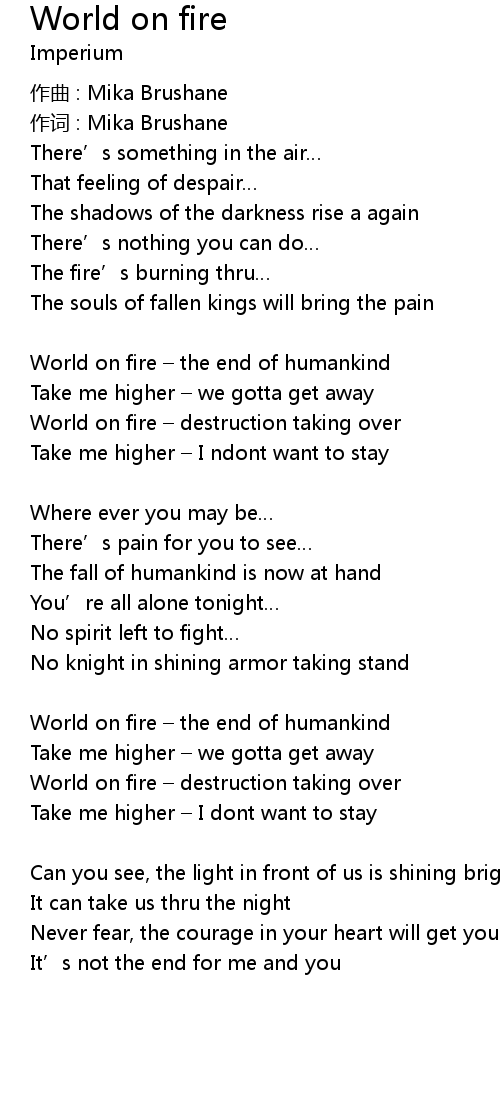 | Song | World on fire |