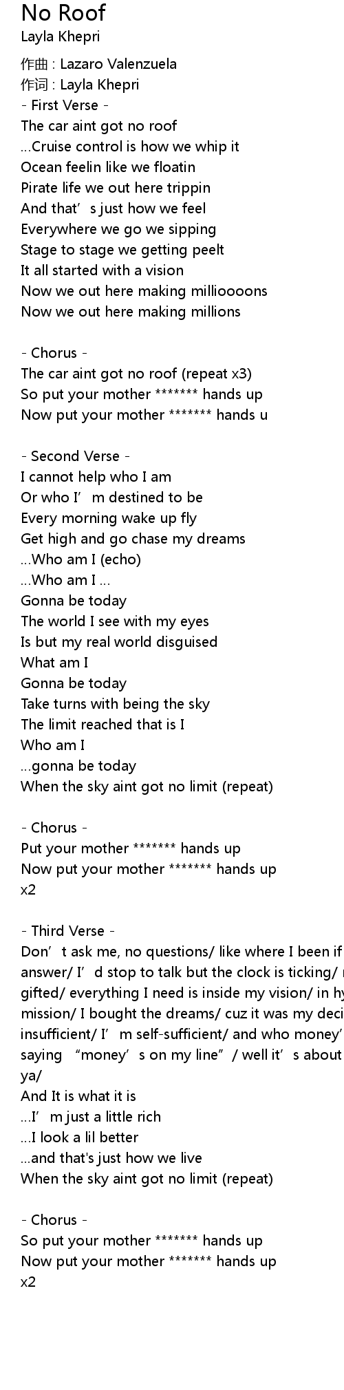| Don’t ask me, no questions/ like where I been if you fishing/ my money’s, my answer/ I’d stop to talk but the clock is ticking/ my presence says that I am gifted/ everything I need is inside my vision/ in hyper speed I complete my mission/ I bought the dreams/ cuz it was my decision/ your bank accounts looking insufficient/ I’m self-sufficient/ and who money’s calling/ that good ole’ saying “money’s on my line”/ well it’s about that time that I use it on ya/ | |