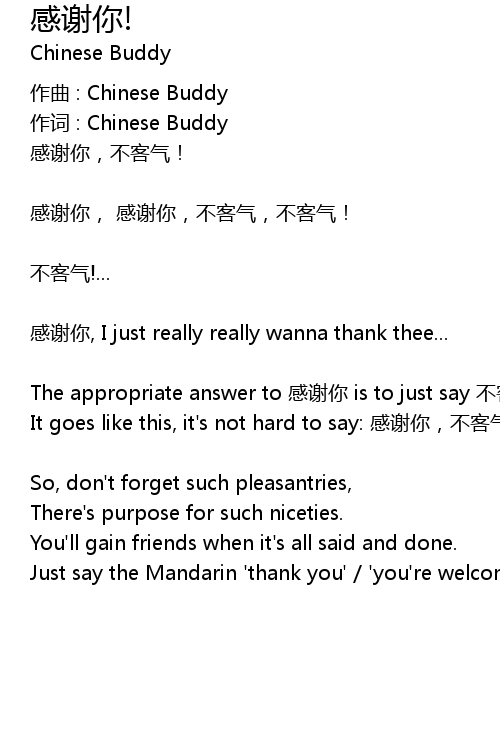 | It goes like this, it's not hard to say: 感谢你,不客气! | |