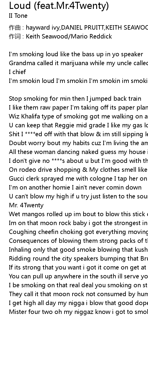 | I'm smokin loud I'm smokin I'm smokin im smokin loud | |