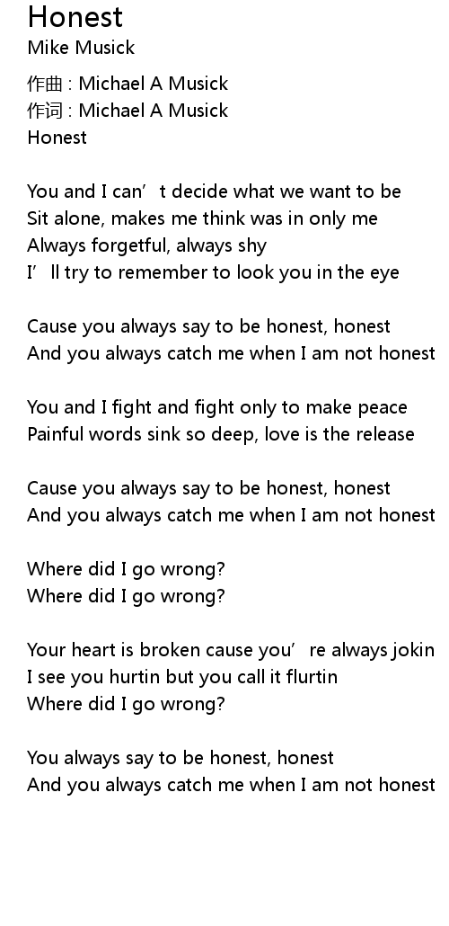 | Cause you always say to be honest, honest | |