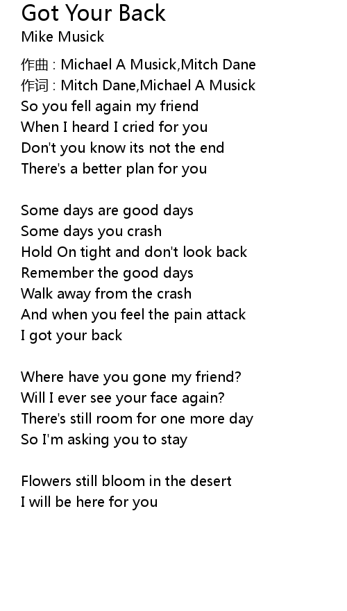 | 作词 : Mitch Dane,Michael A Musick | |