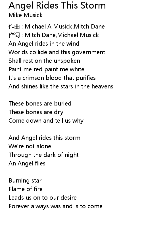 | And Angel rides this storm | |