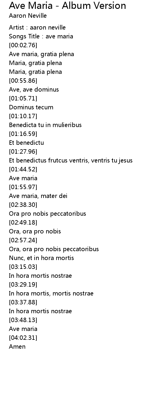 | [01:34.11] | Et benedictus frutcus ventris, ventris tu jesus |