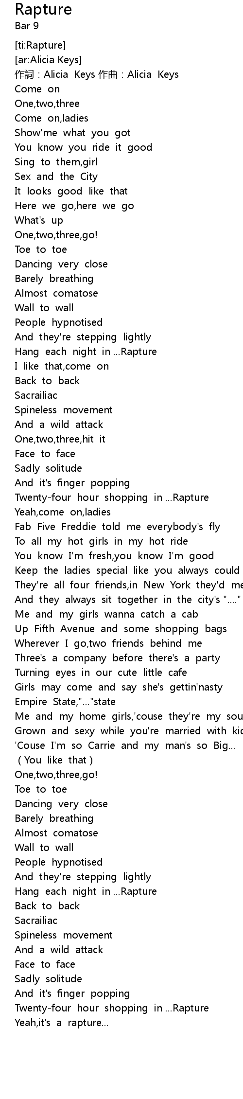| [03:44.11] | Hang each night in ...Rapture |