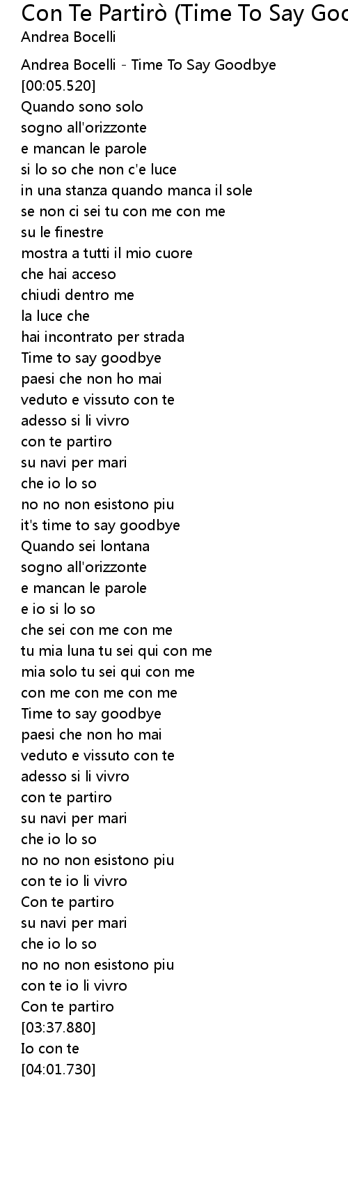 Andrea Bocelli - Time To Say Goodbye |