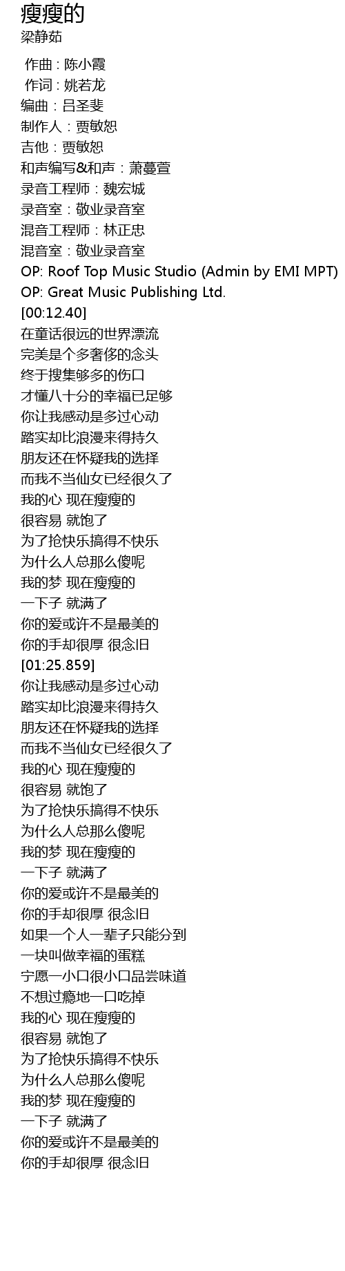 | [01:07.131] | 我的梦 现在瘦瘦的 |