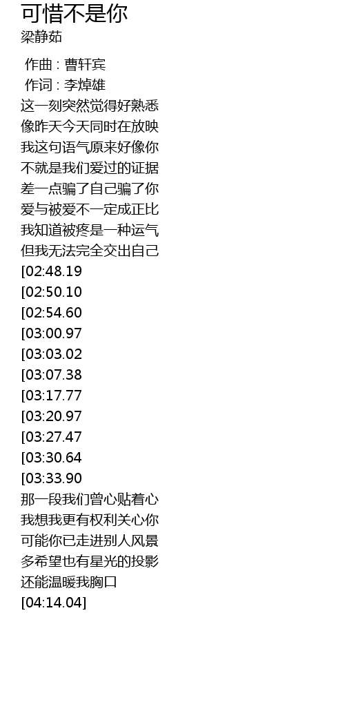 | [01:04.17] | 差一点骗了自己骗了你 |