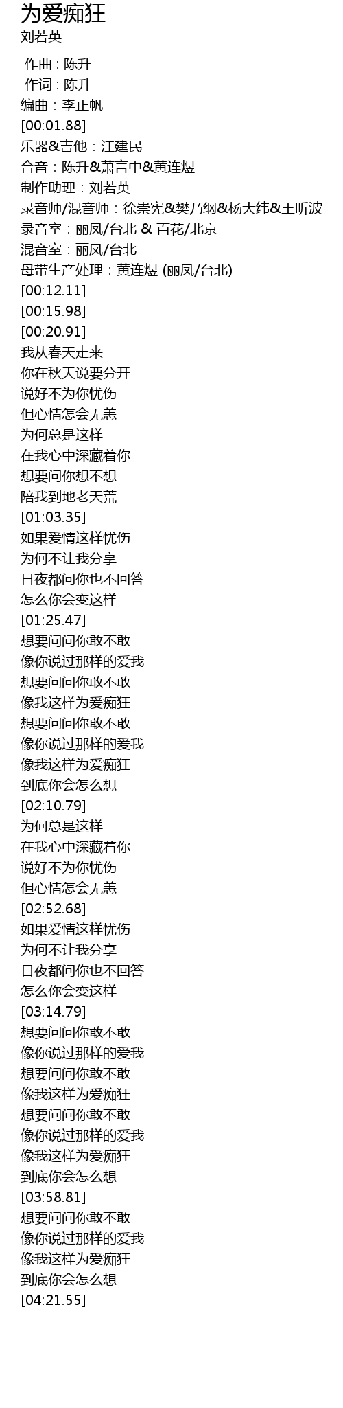 | [01:59.07] | xiang wo zhe yang wei ai chi kuang |