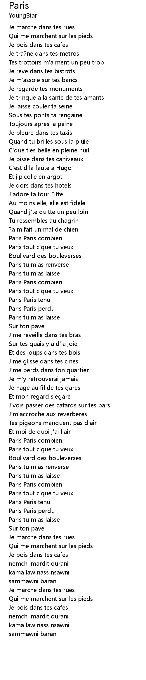 [02:18.300] Paris tu m'as laisse