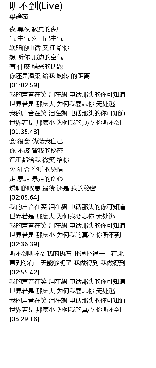 | [03:19.90] | 世界若是 那麽小 为何我的真心 你听不到 |