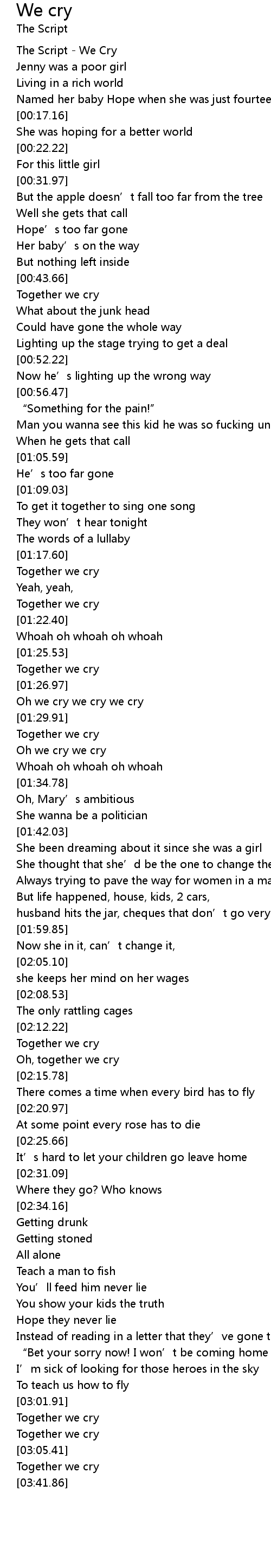| [00:03.53] | The Script - We Cry |