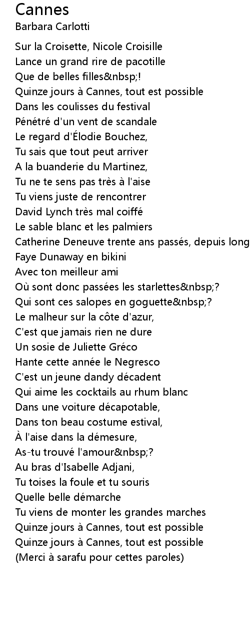 | Song | Cannes |