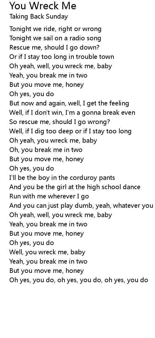 Oh yeah, you wreck me, baby |