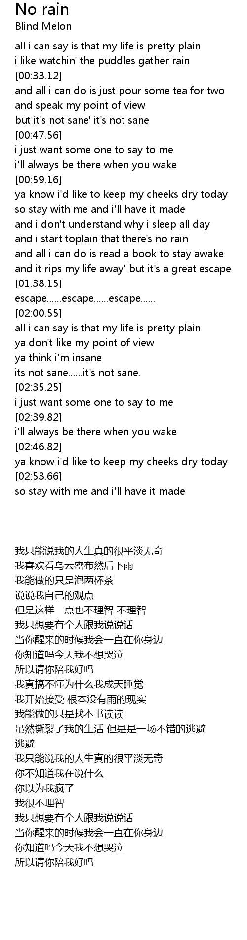 and i start toplain that there's no rain |