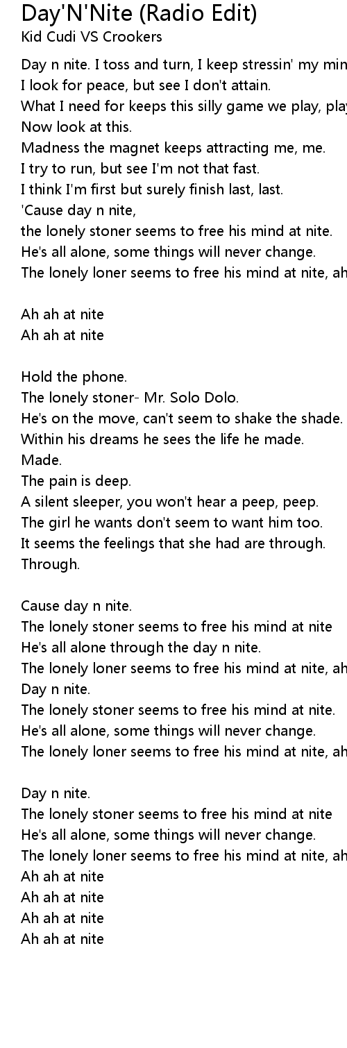The lonely loner seems to free his mind at nite, ah ah at nite. |