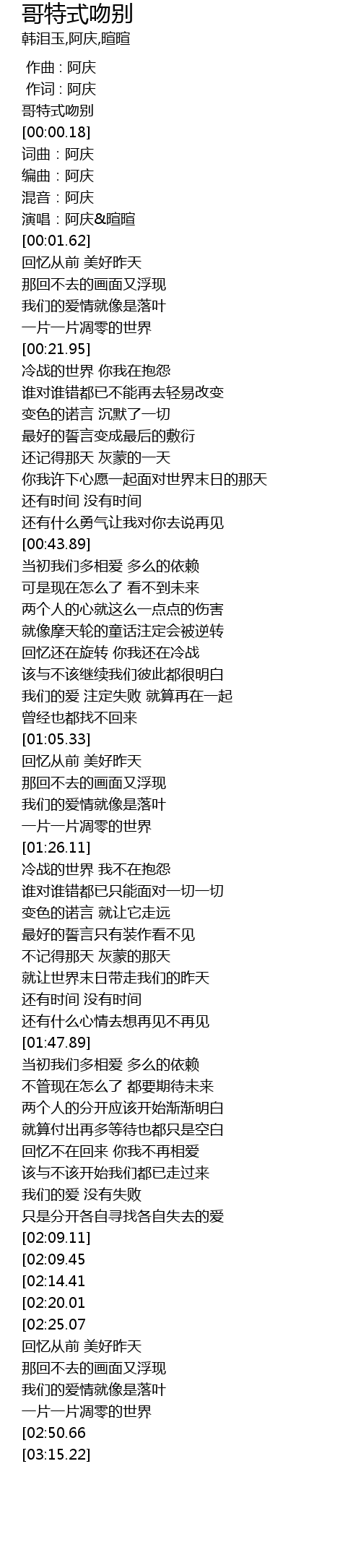| [01:58.39] | 回忆不在回来 你我不再相爱 |