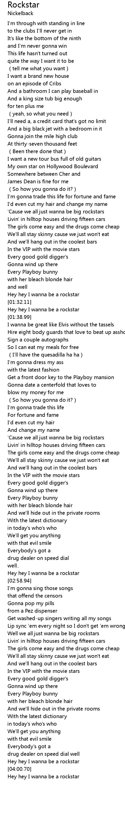 | [01:34.72] | Hey hey I wanna be a rockstar |