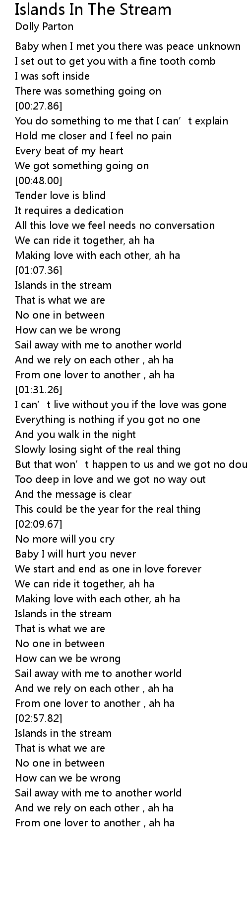 | [01:08.34] | Islands in the stream |